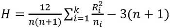 nは全体の症例数、niは各群の症例数、Riは順位和