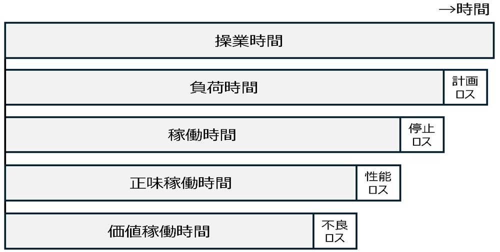 以上、これらの時間を使って分析することにより得られる性能稼働率やOEE、TEEPなどのKPIを用いて設備の生産性を評価します。
