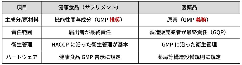 1. 健康食品GMPと医薬品GMPの構造比較