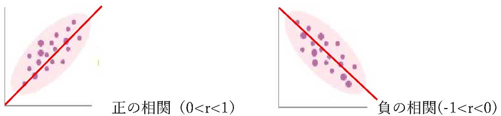 ここで重要なのは、数値(r)だけでなく必ず「散布図」を確認することです。データが直線y=x(y=-x)に巻き付くように分布しているほど相関は高く、rの値が1に近づきます 。